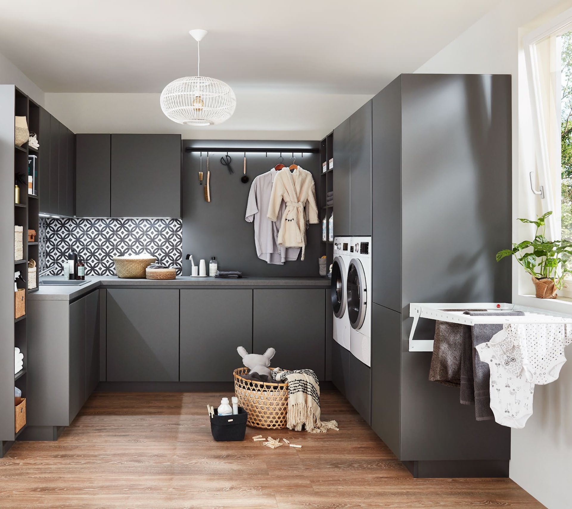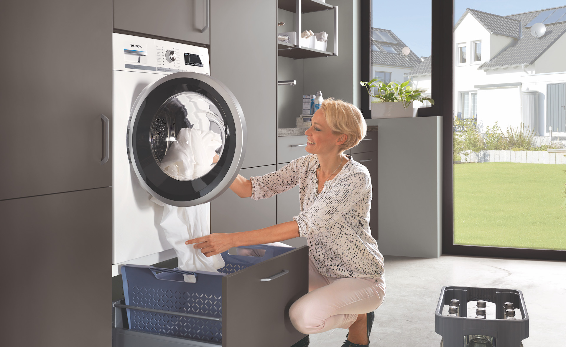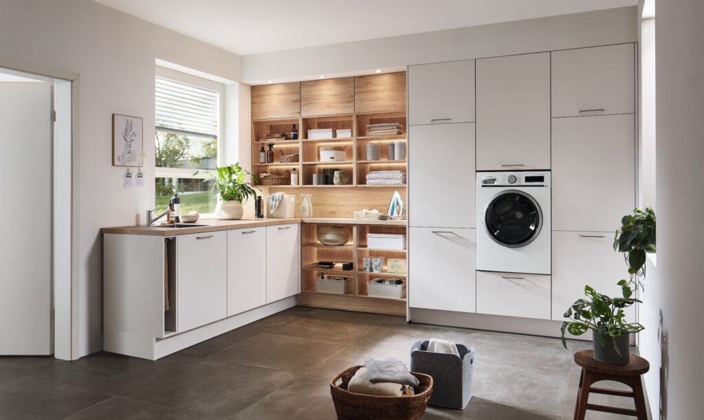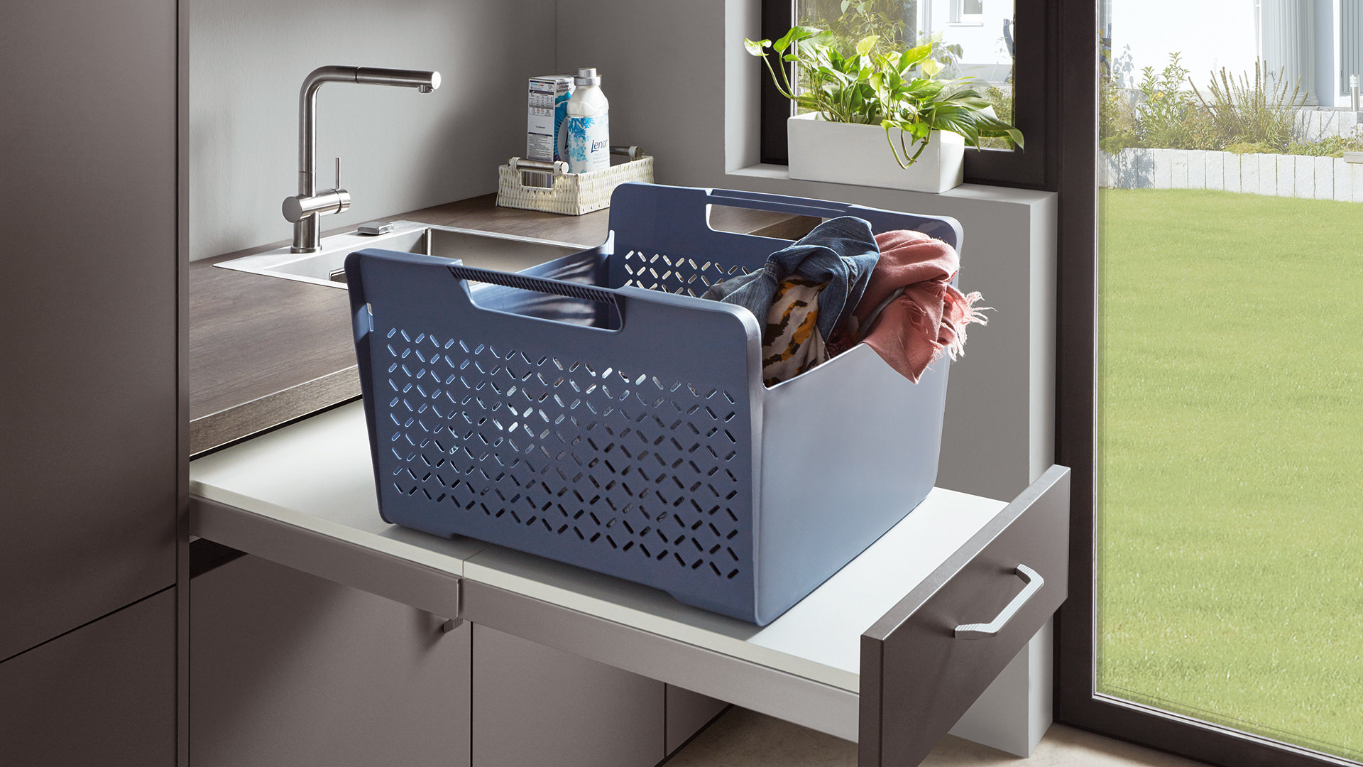 Der Hauswirtschaftsraum ist ein wichtiger Bestandteil jeder Wohnung oder jedes Hauses. Mit diesem cleveren Ordnungssystem, bestehend aus einem Unterschrank mit Wäschekorb-Tablaren und einem Hochschrank mit Wertstoff-Depot und diversen Halterungen und Utensilienbehältern, können Sie die Organisation Ihres Haushalts perfektionieren. So schaffen Sie mehr Stauraum und Ordnung und vereinfachen die Arbeit im Hauswirtschaftsraum. Lassen Sie sich von uns inspirieren und verwirklichen Sie Ihre individuellen Einrichtungsideen.