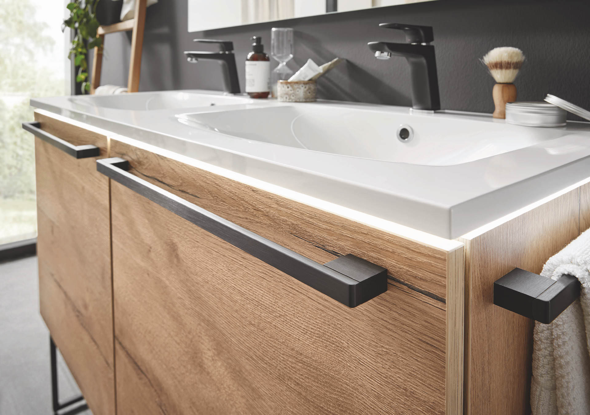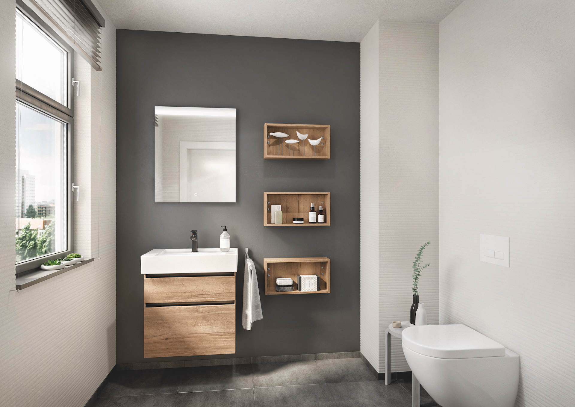Unsere Eiche Sierra Badezimmermöbel bieten eine naturbelassene Optik, die Struktur in viele Raum-Architekturen bringt und Ihrem Badezimmer einen frischen und warmen Look verleiht. Die natürliche Maserung und Farbgebung der Eiche Sierra schafft ein harmonisches Gesamtbild, das sich nahtlos in viele verschiedene Badezimmerstile integrieren lässt. Sie können sie als angenehmen Kontrast oder als harmonische Ergänzung zu anderen Farben und Materialien einsetzen.