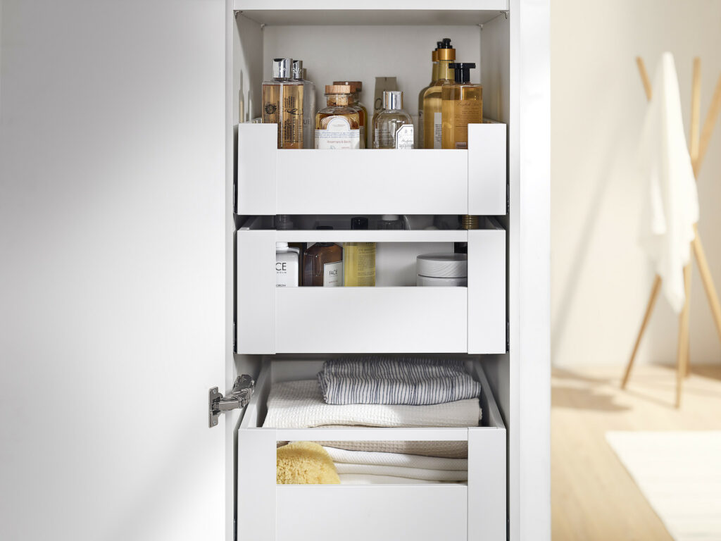 Die runden Abschlusswangen verleihen den Möbeln einen wohnlichen Charakter und schaffen eine angenehme Atmosphäre in Ihrem Badezimmer. Das moderne Design der schwarzen Badmöbel fügt sich nahtlos in viele verschiedene Badezimmerstile ein und lässt sich hervorragend mit anderen Farben und Materialien kombinieren.