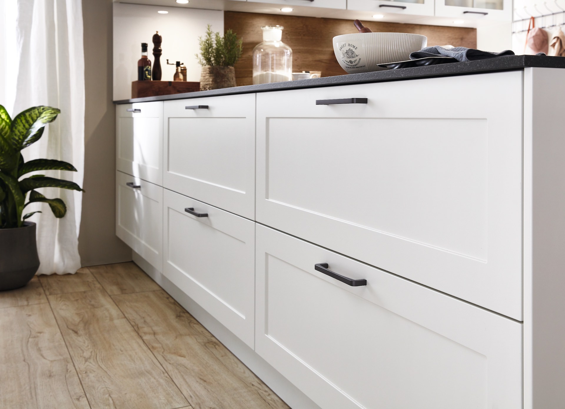 Jede unserer Küchen wird speziell für Sie entworfen und gebaut, um Ihren persönlichen Geschmack und Ihre Bedürfnisse zu erfüllen. Gemeinsam mit Ihnen kombinieren wir verschiedene Arbeitsplatten und Nischenverkleidungen mit einer vielfältigen Auswahl an Küchenschränken und Regalen, um anschließend die Küche mit Elektrogeräten Ihrer Wahl zu komplettieren.