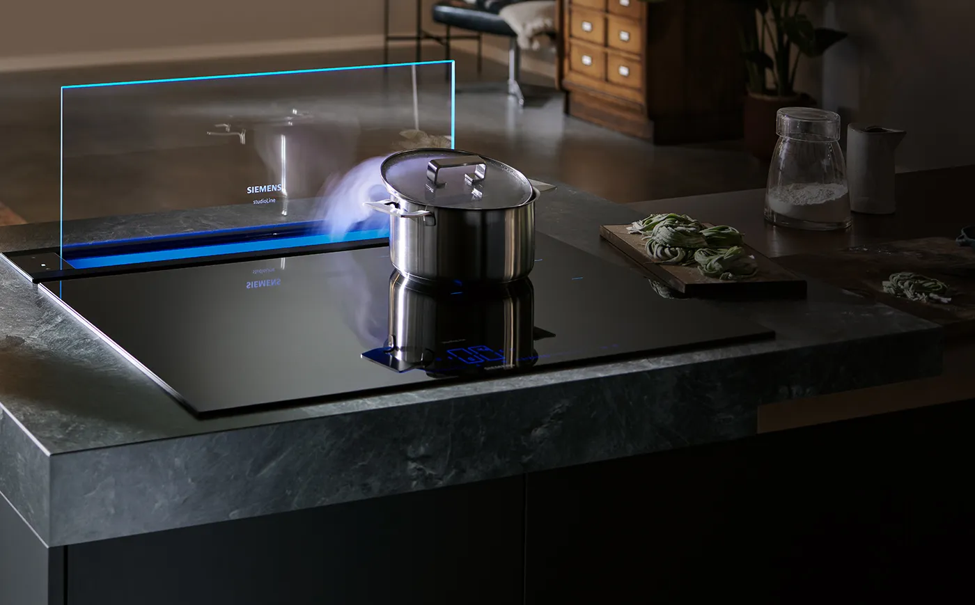 Das glassdraftAir System von Siemens vereint Design, hochwertige Materialien und eine hervorragende Abzugsleistung.